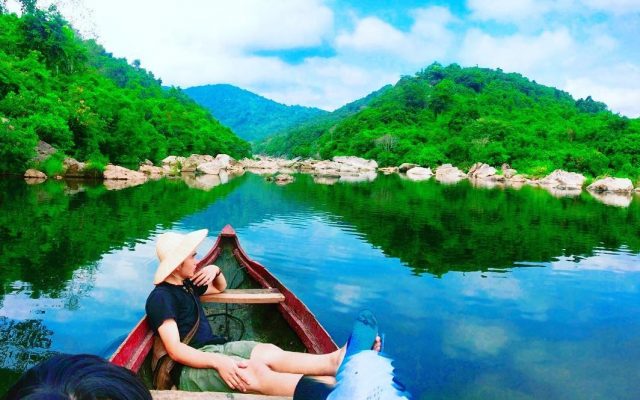 14h30: Tiếp tục đến Khu du lịch Hầm Hô – Lâm viên hoang dã và nên thơ, đoàn khám phá non nước hữu tình khi chèo thuyền du ngoạn trên dòng sông Kút thơ mộng.
