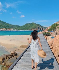 Quý khách thoải mái khám phá bãi cát dài mịn, khung cảnh hoang sơ đầy quyến rũ, đặc biệt được chấm phá bằng những công trình đặc sắc như Cầu Yến, Cầu Trái Tim, Kỳ Co Resort,… và những hang đá, suối nước đẹp đến bất ngờ.
