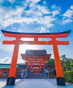 - Điểm dừng chân tiếp theo là Chùa nghìn cột Fushimi Inari. Đây là ngôi đền thờ thần đạo nổi tiếng của Kyoto. Nơi đây nổi bật với hơn 1000 cổng Tori màu đỏ son, những chiếc cổng Tori này liên kết với nhau tạo thành những con đường mòn nằm phía sau khu đền chính. Những con đường này dẫn chúng ta đến với khu rừng rậm của ngọn núi Inari linh thiêng, ngọn núi cao 233 mét nằm trên đất của ngôi đền.